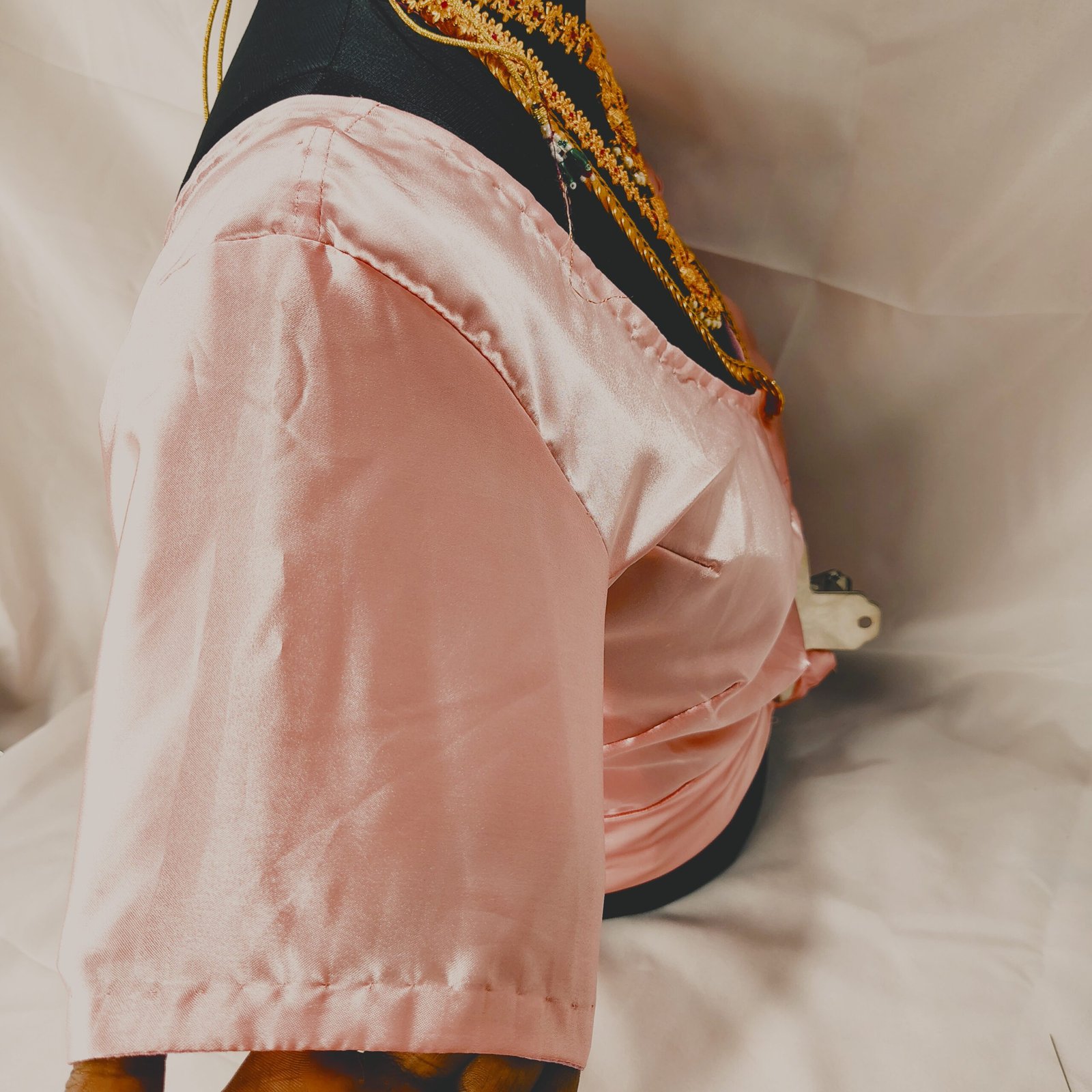 This blouse comes with a classic neck and sleeve style, giving it a versatile look that works for daily wear, traditional events, or even mix-and-match fashion styling. The satin material gives a gentle shine and luxurious feel to elevate your look effortlessly.