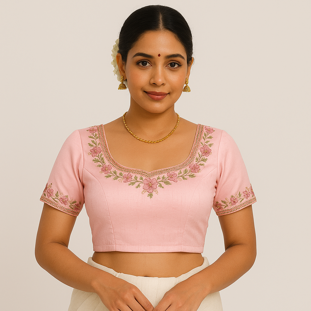 Every blouse includes 2 inches of extra margin for alterations. Custom sizes are available on request. This blouse can also be made stitched or unstitched based on your requirement.